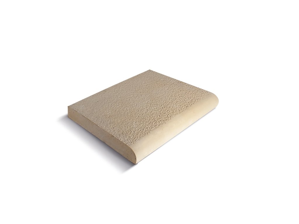 Dlaždice sa využívajú na vytvorenie bazénovej obruby zaoblenej z vnútornej strany. Majú reliéfny povrch, vďaka čomu sú protišmykové a výborne odvádzajú vlhkosť. Vnútorné zaoblenie zvyšuje bepečnosť pri náhodnom náraze. Dlaždice dodajú vášmu bazénu punc kvality a originality, vytvoria pevnú a bezpečnú nášľapnú plochu a zároveň ho ochránia pred nečistotami z okolia. Tento variant je bez pridanej farby, teda v prirodzenej sivej farbe betónu.